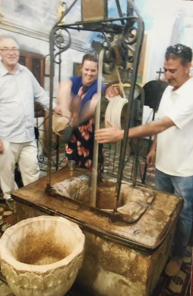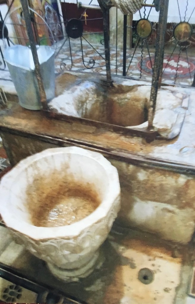 The well is protected in a Greek Orthodox Convent, and guarded by Greek Orthodox priests. When we visited, one of the priests told us that his predecessor had been killed on the job when bandits came in and shot him.