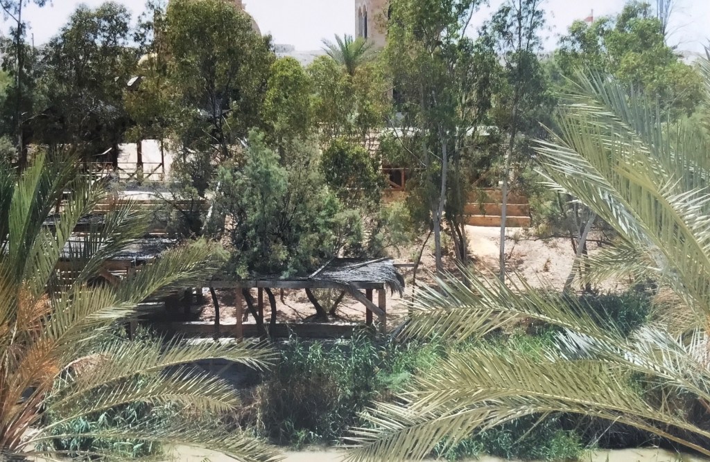 We arrive at the Jordan River and the first sight is breathtaking – branches of palm trees waving in a lovely breeze on a very hot day. A steep pathway leads to individual areas for groups to gather and celebrate baptism or baptism renewal.