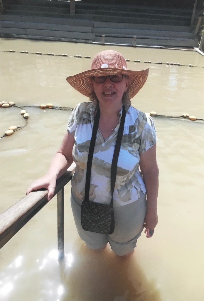 This is our opportunity to renew our baptism promises while standing (on a step) in the Jordan River. It was meaningful to acknowledge our belief that Jesus is the Son of God. Doing that in the place where those words were first said was powerful.